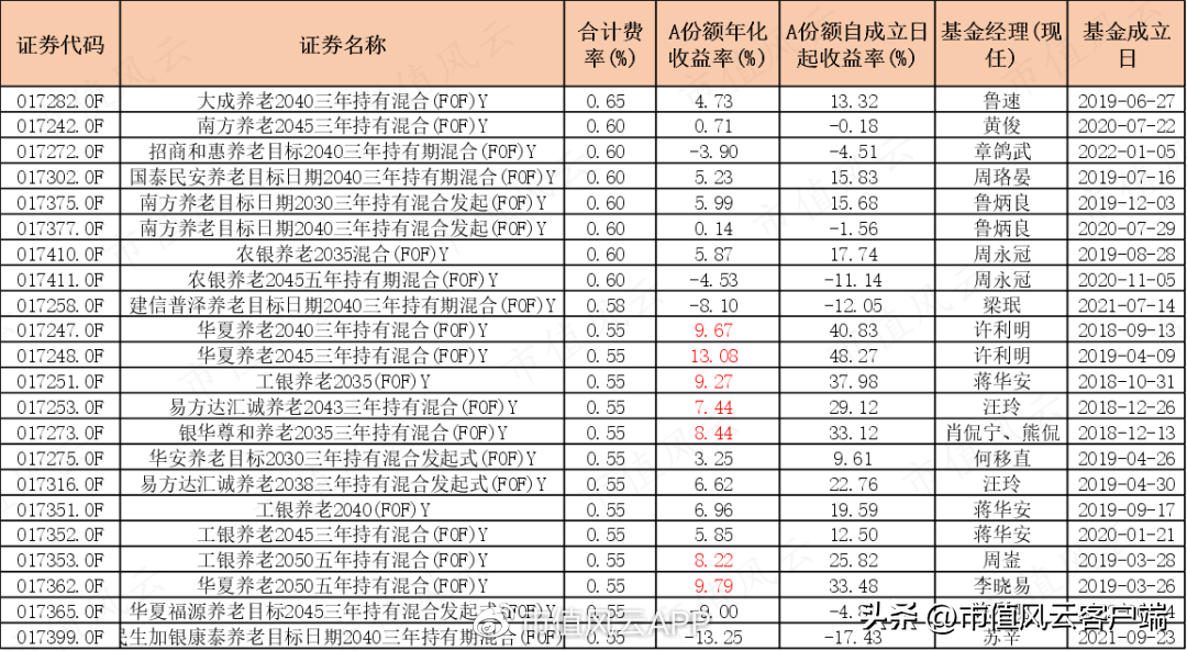 合计费率超0.55%的目标日期基金Y份额有22只,其中仅7只基金A份额的年化收益率超过7%,占比约3成,略高于同类基金7%年化收益率总数(21只)的23%。
